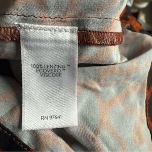 Elevate your wardrobe with this stunning J. Jill blouse in a plus size 2X. The square neckline and 3/4 puff sleeves add a touch of sophistication, while the silky and soft viscose material provides comfort and versatility. The blouse features a beautiful animal print in copper and leopard, making it perfect for any occasion, from workwear to weddings.