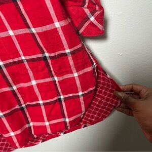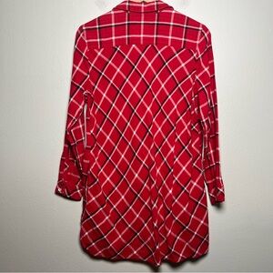 J. Jill Women Button Downn Tunic Top Medium Red Plaid Holiday Pockets