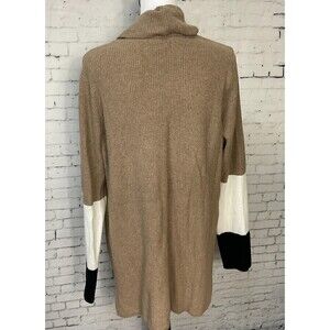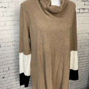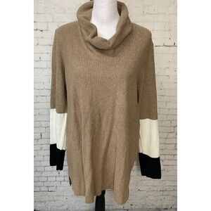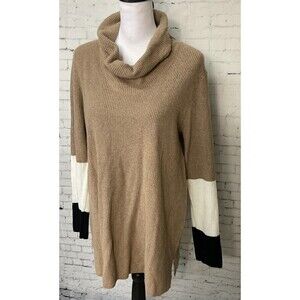 J Jill Women Camel Black White Stripe Turtleneck Sweater Tunic Oversized Sz L U2