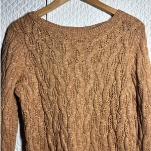J. Jill Women Medium Petite Brown Cable Knit 3/4 Sleeve Sweater Fall Career
