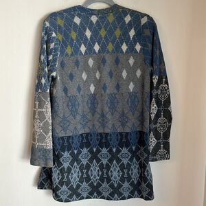 J. Jill Women Patchwork open cardigan duster argyle long sweater blue gray size Small