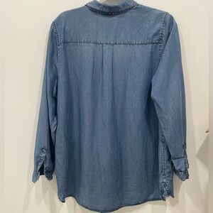 凸 J. Jill Women Shirt Size M Lightweight Chambray Tunic Long Sleeve Button Down