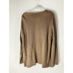 J Jill Women Sweater 2X Red Tunic Rib Knit Long Sleeve V Neck Pullover Brown Tan