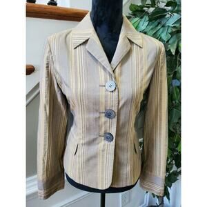 J. Jill Women Tan Polyester & Rayon Three Buttons Single Breasted Blazer Size 4