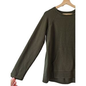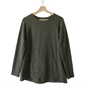 J Jill Women Textured Sweatshirt Green Kangaroo Pocket Round Neck Pullover Sz S