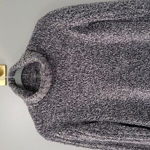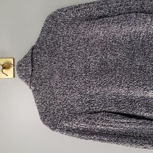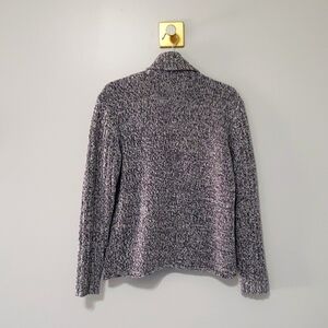 J. Jill Women Turtleneck Sweater Medium Chenille Boxy Gray White Knit Rolled Hem Soft Comfy Casual Office Preppy Work