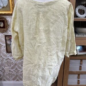 J Jill Women’s 100% Linen Butter Yellow Striped Shirt size Large