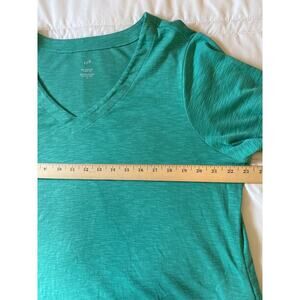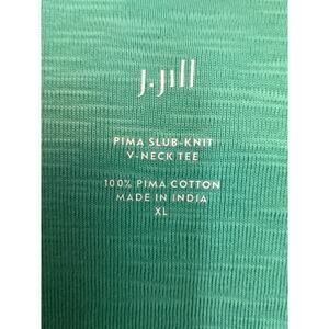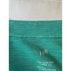 J Jill Womens 100% Pima Cotton Slub-Knit V-neck Tee Green 3/4 Sleeves Size XL