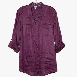 J. Jill Women’s 100% Ramie Long Tab Sleeve Button Down Shirt Plum Size Medium