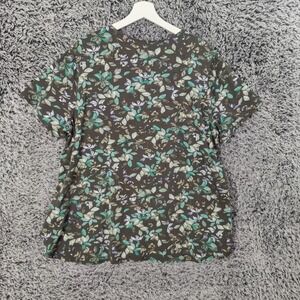 J Jill Womens 2X Dark Floral Progress Shirttail Tee Top Pima Cotton Brown Green