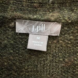J Jill Women's Alpaca Wool blend Cardigan Green Aztec Open Front 1 button Sz M
