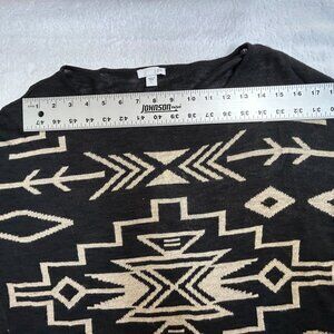 J. Jill Womens Black & Beige Aztec Knit Sweater Large Linen Blend 3/4 Sleeve
