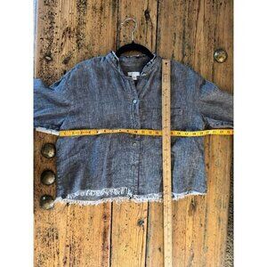 J. Jill Women's Black Blouse Size XS long sleeve linen cropped short