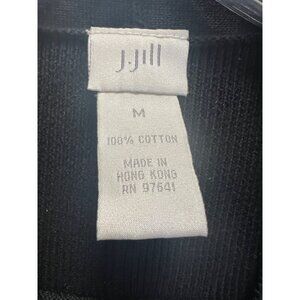 This medium black button-front cardigan from J. Jill is crafted from 100% cotton for a soft, breathable wear. Designed with pockets and a back pleat, it combines functionality and style, making it a versatile wardrobe addition.