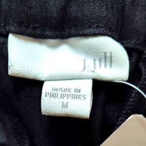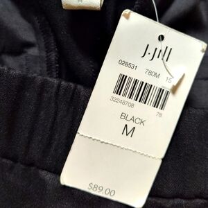 NWT J. Jill Women's Trouser Pants Flat Front Straight Leg Black Linen Blend Fabric Elastic Waistband Pull On Cuffed at Bottom 2 Side Pockets 2 Slit Pockets in Back Spring Summer Fall Church School Teacher Office Professional Business Date Beach Vacation Travel
