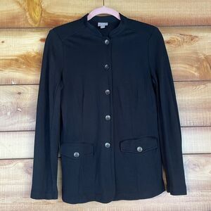 J Jill Womens Blazer Jacket Small Wool Blend Black Long Sleeve Button Career