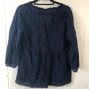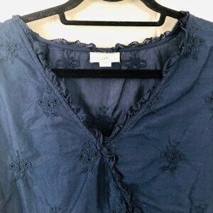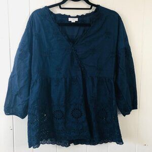 J. Jill Womens Blouse Dark Blue Oversized Pull On Eyelet Embroidered V-Neck X-Small