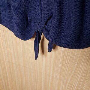 Women’s J.Jill Front tie crew neck sweater. Gently used condition, there is a snag in front (see photo). Measurements are: 21” drop sleeve, 26” from shoulder to shortest hem in front, 14” from armpit to hem, and 23” from armpit to armpit.