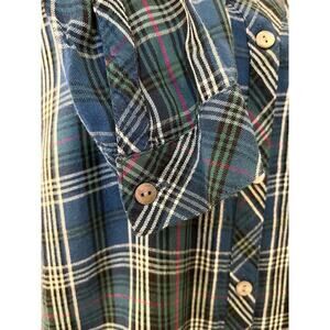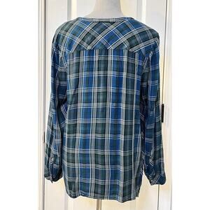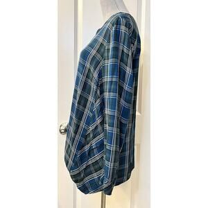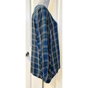 J. Jill Women’s Blue Plaid LS Tunic Blouse Button Up Shark Hem Split Neck
