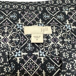 J. Jill Women's Blue Scroll Print V-Neck Long Sleeve Tunic Blouse Size Medium