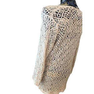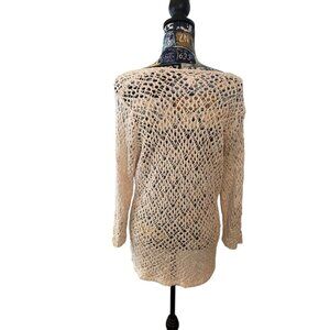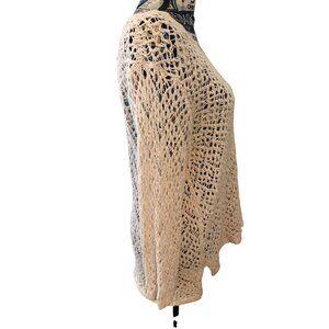 J Jill Women's Blush Pink White Layering 3/4 Sleeve Beach Wear Sweater Sz M