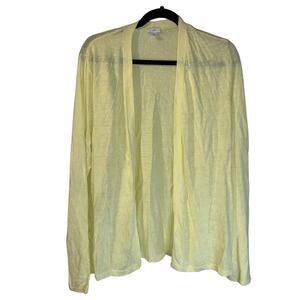 J Jill Women's Butter Yellow Linen Blend Cardigan Tall Size XLT Open Front Beach