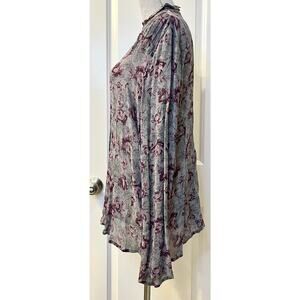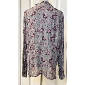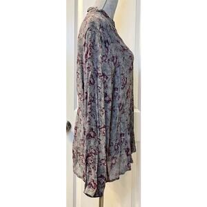 J. Jill Womens Button Down Shirt Long Sleeve Ruffle Neck Floral Print Gray XL