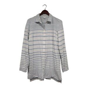 J. Jill Women's Button Front Top White Gray Striped Tunic Long-sleeved Sz S Tall