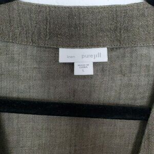 J. Jill Womens Cardigan Size L Tie Front Linen Pleat Sleeve Green Coverup Beachy