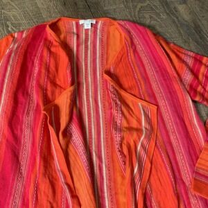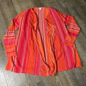J. Jill Womens Cardigan Sweater Size XSP Orange Striped Open Front Long Sleeves