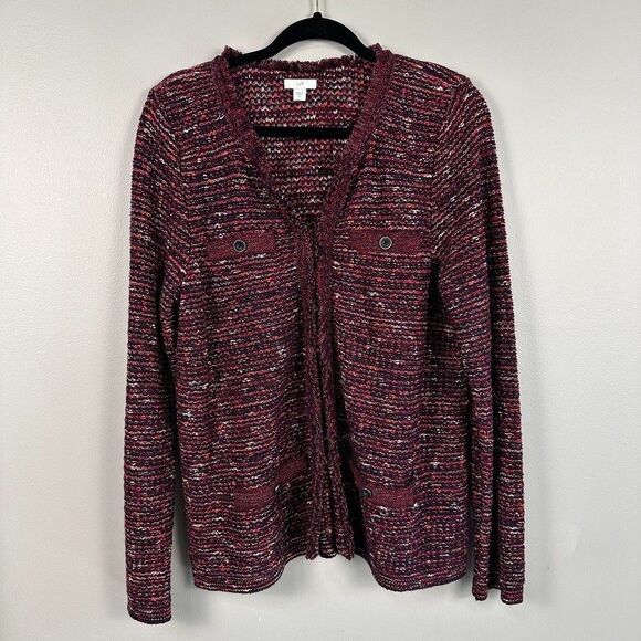 J. Jill Womens Cardigan Sweater Tweed Size Medium Burgundy