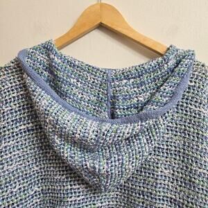 j jill knit hoodie, coastal grandma sweater, beach coverup sweater, cotton open knit top, relaxed fit hoodie, boho lightweight pullover, blue green textured knit, casual coastal outfit, comfy spring sweater, Boho, Coastal, Minimalist, Beachy, Casual, Relaxed, Lightweight, Layering, Soft, Comfy