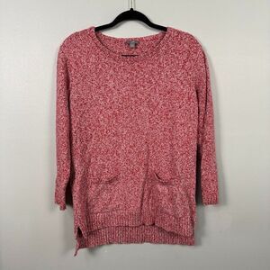 J. Jill Womens Crewneck Pullover Knit Tunic Sweater Size Small Red Pockets