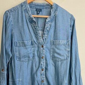 J. Jill Womens Denim Button Down Long sleeve Shirt Dress Size Medium Petite