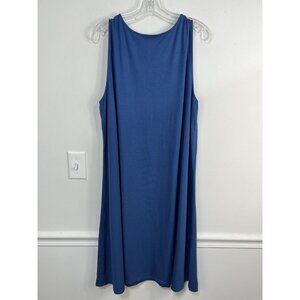 The J. Jill Women's Dress Maxi Sleeveless Sundress in Blue, Plus size 2X, is a versatile and stylish option for various occasions. This stretchy, comfortable dress features a solid pattern with a round neck and strappy sleeves, perfect for summer, fall, or spring. The maxi length and blue color make it suitable for travel, parties, casual wear, or even workwear, with a touch of cottagecore charm. Made from a blend of spandex and rayon in a knit fabric, this dress offers a flattering fit and a hint of Bohemian flair.D