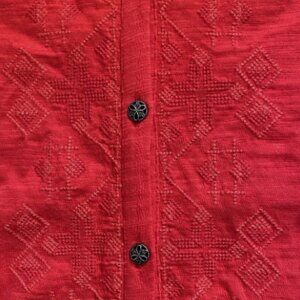 J Jill Womens Embroidered Red Button Up Knit Tunic Top Long Sleeve Size XL