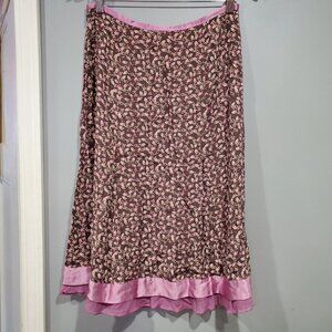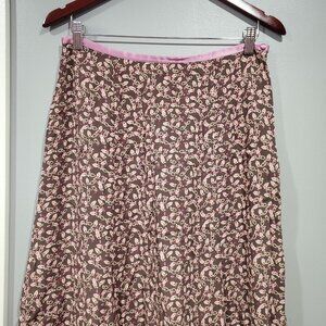 J. Jill Women's Floral A-Line Purple Satin Trimmed Skirt Ruffles Zip Size 8