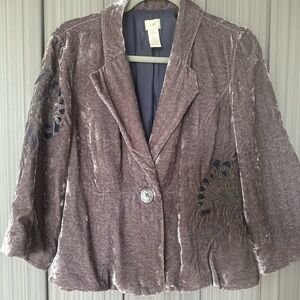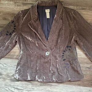J Jill Women's Floral Embroidered Crushed Velvet Blazer Jacket Career Sz 10P