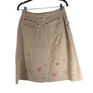 J. Jill Womens Floral Embroidered Khaki Skirt A Line Pockets Size 6P