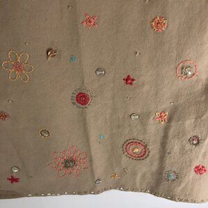 Khaki skirt with floral embroidery, ideal for casual wear.