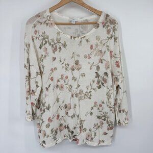 J. Jill Womens Floral Print Sweater 3/4 Sleeve Linen Blend Size Large lagenlook