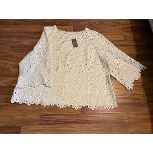J Jill Womens Full Crochet Lace Tunic Top 3X Ivory 3/4 Sleeve Boho Cotton NWT