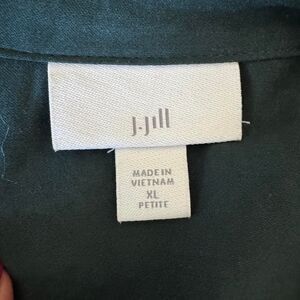 J Jill Women's Green Button Up Blouse Size XL Preppy Academia Comfort Basic