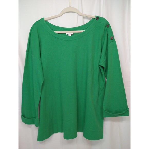 J. Jill Women's Green Knit Pullover Sweater Size L long cuffed sleeves