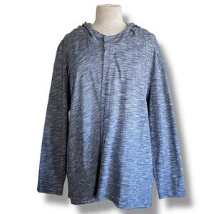 J Jill Womens Hoodie Cardigan Sz Large Petite LP Heather Blue Open Front Beach