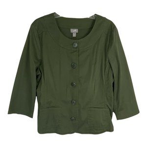 J Jill Womens Jacket Size 16 Green Utility Military Buttons Button Scoop Neck