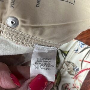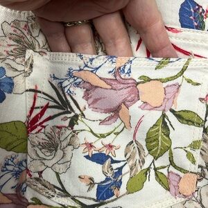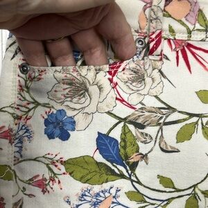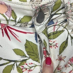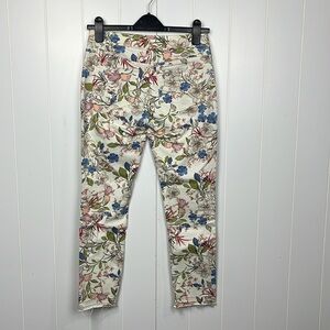 J. Jill Womens Jeans 0P Pink Green Blue Authentic Fit Slim Ankke Floral Print Stretch Sits Below Waist Button/Fly Zip 5 Pocket Frayed Hems Feminjne Pretty Chic EUC