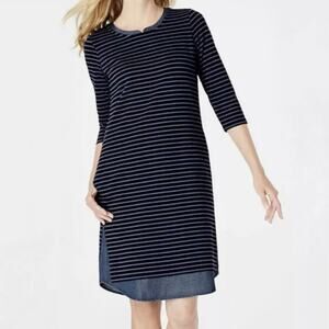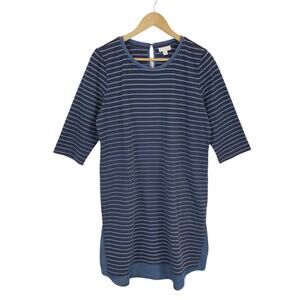 J. Jill Women's Jersey Knit 3/4 Sleeve Striped Shift Dress Blue Size Medium
