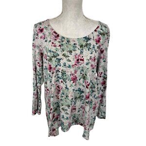 J. Jill Women's L Dipped Hem A-Line Tee Gray Floral