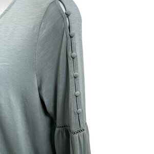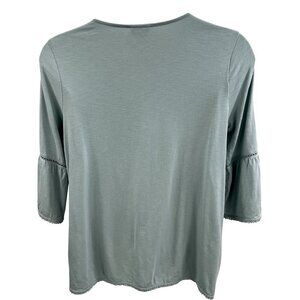 J.Jill top sage green top ruffle sleeve v-neck shirt button detail womens fashion casual wear summer blouse lightweight top cotton top stylish top elegant blouse L size